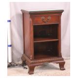 Drexel mahogany single drawer open front night stand; 662-1636 - fluted columns - protective glass top - (finish as-is) - 17x14x28.5