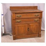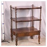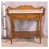 Oak 2 tier single drawer washstand with marble top; 662-1637 - turned legs - 35x18x34.5
