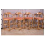 Set of 4 Century maple corner bar chairs; 74-5125 - turned columns - (fabric as-is) - 23x24.5x40.5; 29" seat height