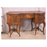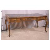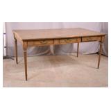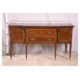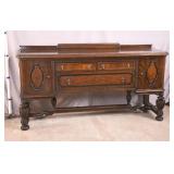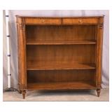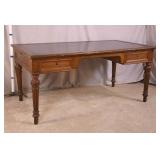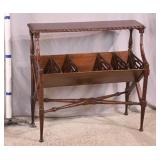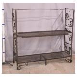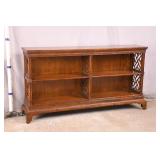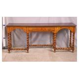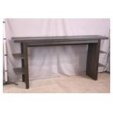 Long distressed console with side shelves; 662-1639 - open center - (rubbed spot in finish on side) - 74x16x36