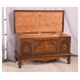 Lane inlaid walnut lift top cedar chest; 662-1650 - barley twist columns - (missing lock) - 44x19x24.5