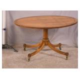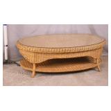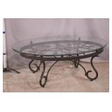 Large oval beveled glass top coffee table with ornate metal base; 662-1652 - 52x34x19