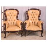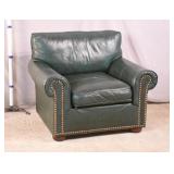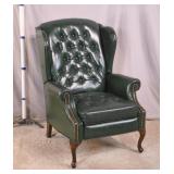 Action Queen Anne style wing back reclining arm chair; 662-1644 - green tufted leather - 30.5x35x42.5