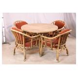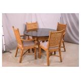 5 piece rattan dining set - table with 4 chairs; 662-1651 - round pedestal table with smoke glass top 42x42x30 - 2 arm chairs 24x22.5x38 - 2 side chairs 18x22x38