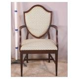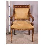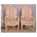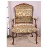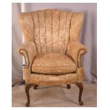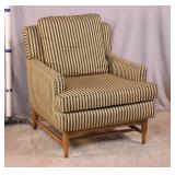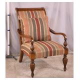 Large open arm chair with pillow and reeded legs; 662- - striped fabric (stain on seat) - 28.5x37x41