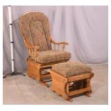 Oak spindle back platform rocker with matching ottoman; 662-1649 - 30x23x43 chair; 18x18x17 ottoman