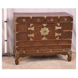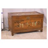 Oriental style lift top trunk; 662-1645 - raised figures - (missing piece of latch) - 40x20x24