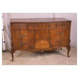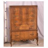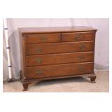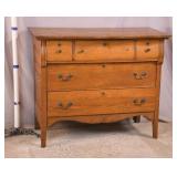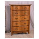 Oak 5 drawer serpentine front chest with panel sides; 74-5045 - 32.5x19.5x47