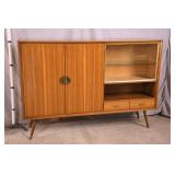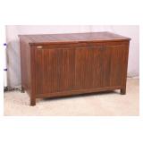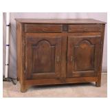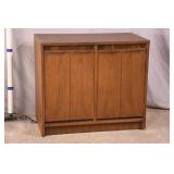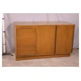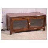 Low 2 glass door entertainment console; 913-164 - 2 shelves (needs shelf pegs) - (finish as-is) - 47.5x19.5x22