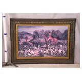 Large framed hunt scene print; 37-890 - (print may be slightly faded or antiqued) - 46.5x33.5