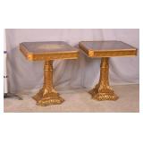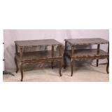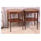Pair of mahogany 2 tier leather top lamp tables; 913-159 - turned legs - (finish as-is; chip on 1 corner; large chip in leg) - 21x21x26.5