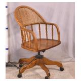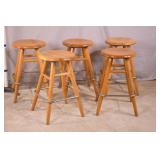 Set of 5 oak swivel seat bar stools; 37-892 - (finish as-is) - 17x17x26.5