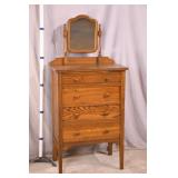 Oak 4 drawer chest with mirror; 253-127 - 30x18x65