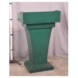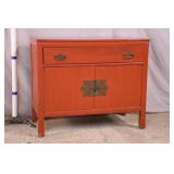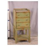 Green distressed single door tall end table; 253-139 - door looks like 3 drawers - 18x18x36.5
