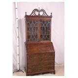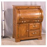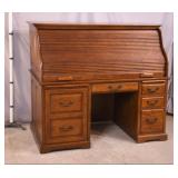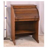 Small oak roll top desk; 253-155 - (separation crack in shelf and side) - 25x18x37