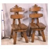 Pair of unique pine accent chairs; 253-189 - easel style backs - 18x23.5x41.5
