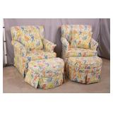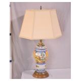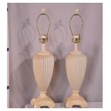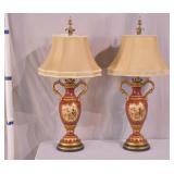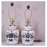 Pair of blue and off-white floral lamps; 716-244 - (different size harps) - 8x8x23