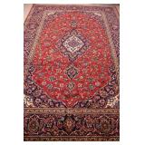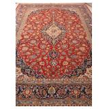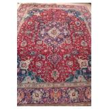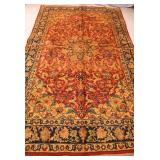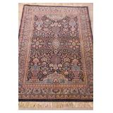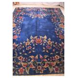Machine made rug with blue background; 74-5133 - (may have a few stains) - 7.8x10.6