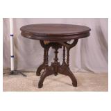 Mahogany drop leaf table with turned legs; 253-135 - (finish as-is) - 40.5x19.5x28.5