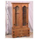 2 door curio cabinet with lighted interior; 566-346 - mirror back with adjustable glass shelves - 29.5x14.5x71.5