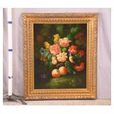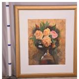 Large gold framed textured floral print "Autumn Rose " by Rudolph; 765-342 - 40.5x47