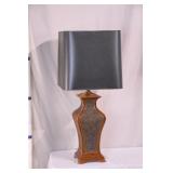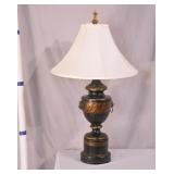 Large brass lamp with shade; 765-338 - (shade as-is) - 19.5x19.5x30