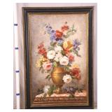 Floral decorated metal lamp with crackle finish; 716-236 -10x10x29