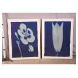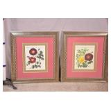 Pair of silver framed floral prints with pink matting; 716-278 - 25.5x28.5