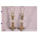 Pair of glass lamps with brass bases; 68-392 - 6x6x32