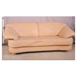 Leather Center concave front leather sofa; 74-4975 - (some marks/dirty areas on leather) - 83x39x31