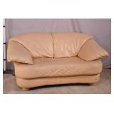 Leather Center concave front leather loveseat; 74-4975 - (some marks/dirty area on leather) - 65x39x31