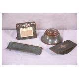 4 piece bronze-look desk set; 37-876 - calendar, ink well, pen holder, etc.