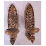 Pair of carved wooden wall sconces for wide candles; 253-lot - 5x7.5x14.5