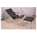 Chrome frame lounge chair with ottoman; 911-111 - adjustable reclining positions - 22.5x43x32 chair; 21.5x18x15