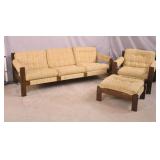 3 piece pine sofa set; 74-5072 - sofa 78.5x31.5x26 - arm chair 30.5x30.5x26 - ottoman 28x21.5x14 - (finish and fabric as-is)