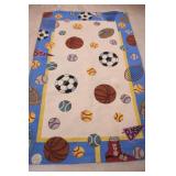 Sports themed hook rug; 74-5133 - (stain in field) - 5.0x7.10