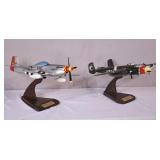 2 USAAF model airplanes; 37-350 - P-51D Mustang 18x15.5x11 - B-25J Mitchell 1/44 scale 18.5x15.5x9 - (each has a broken prop)