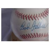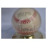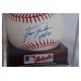 Description: Autographed Mark Fidrych / George Foster National League Baseball in display case.