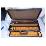 Description: AMES Compaxt Draft Pak wood briefcase w/supplies (dovetail joints), a completely self-contained system that includes a drawing board with parallel blade, a tilting mechanism for board angle, and a storage compartment for tools. Easily converts to a convenient briefcase with carrying handle. The drafting surface is reversible to put parallel blade inside case for protection when transporting. The drawing can be left in place when the unit is closed. Acrylic parallel blade for highest clarity and dimensional stability will not discolor and is not affected by sun or water. The cord mechanism, which keeps the blade parallel, is enclosed for trouble-free operation and provides easy adjustment of blade. Outside size 15 1/2 x 19 1/2 x 2 1/2 You also get a 3 drawer box filled with vinyl letters of different sizes. The Ames Draft Pak Sells new on Amazon for $160.00