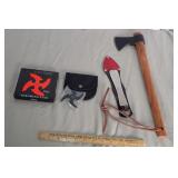 Description: Throwing Hatchet - Throwing Knife w/ sheath - Black Ronin Throwing Star w/sheath in box.