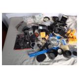 Description: LOT of camera accessories. Hotshoe flash, hoods, lenses, lens caps, lens filters, wrist straps, See all photos. You get it all.