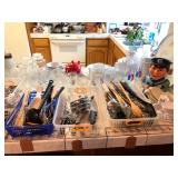 Artwork, pipes, furniture, accessories, collectibles, Disney, hutch, storage, dining table, wing back chairs, sofa, barstools, clocks, full kitchen, trundle bed, rugs, clothing, books, recliner, file cabinet, stereo, office supplies, tools, sleeping bags, tents, washer and dryer, trash compactor, water cooler, vinyls, treadmill, toolboxes, boat accessories, vacuums, Motorized wheelchair etc. |