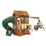 Up, down or sideways—everywhere you look, the Summerlin Play / Swing Set from KidKraft is packed with fun. The extra-large lower clubhouses features a play clock with moveable hands and a double sided chalkwall. The shaded lower activity area with moveable bench is a great place for kids to eat, color or chat with friends. The kids can run their own café from the deluxe kitchen with play sink, stove and accessories. Your children can explore the exciting upper clubhouse covered by a wooden roof with decorative dormer by climbing up the rock-climbing wall or swinging across the monkey bar with ladder. Once there, your children can wave through the decorative windows before launching down the 12’ Twist N' Ride Tube Slide. Also Included are 2 belt swings (with soft touch rope) and premium glider for one or two passengers that are attached to the solid swing beam with premium swing components. With all of these activities the Summerlin Retreat Play Set is sure to be the focus of all your children’s outdoor adventures!
