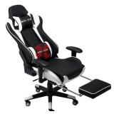 ★ MATERIAL: high-quality PU leather, the chair is equipped with large and soft handrails whose height can be adjusted. Thicker high density sponge will give you more comfortable cushioning experience and wide backrest will provide you with better support. ★SAFE: accessories as well as SGS Class 3 barometer provide safe and smooth seat lifting functions and the thickened support chassis guarantees the stability of chairs. Besides, thickened steel frames ensure the reliability of chairs, large- sized PU wheels protect the wooden floors from being scratched, and high density cushion sponges will ensure long-term non-deformation. ★ FUNCTIONS: It is a gaming chair with footrest and a gaming chair with massage.comfortable and ergonomically designed,the product is characterized by 360 degrees of rotation, adjustable height, retractable footstool, USB waist massage pillow, adjustable waist pillow and head pillow. After being adjusted the back angle from 90to180 degrees, the chair will meet your different needs for work, game, rest and massage.The waist pillow is equipped with USB massage function. ★ BRAND CONCEPT: We take every gaming chair seriously. Strict inspection has been carried out from product design to factory testing. We hope every customer can get the perfect product, so we will always work hard to make you satisfied. Sincerely thank you for purchasing our gaming chair.