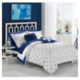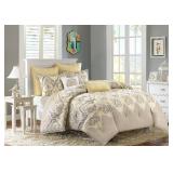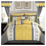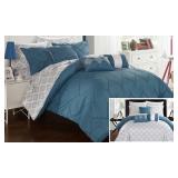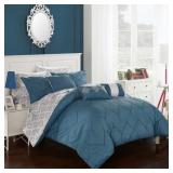 Chic Home Icaria Bedding. A fashion forward bedding. The comforter features an elegant color block pinch pleat pintuck design with pattern print details. King. Retail Packaging. MSRP $470.00. (18) |