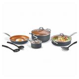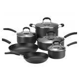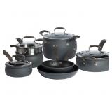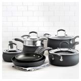 Epicurious® 11-pc. Hard-Anodized Nonstick Cookware Set. Look forward to dinner prep with this Epicurious cookware set. Aluminum construction for even heating and cooking. Triple-coat nonstick interior for easy cooking and cleaning. Heavy-gauge design suitable for all cooktops. Stay-cool silicone handles. Shatter-resistant glass lids. Included 1.5-quart covered saucepan, 2.5-quart covered saucepan, 4-quart covered saute pan, 8-quart covered stock pot, 8-inch frypan, 10-inch frypan. Retail Packaging. MSRP $400.00. (15) |
