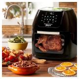 Power Air Fryer Oven 6 Quart. One-Touch Control Panel With Auto Shut Off Timer1700 Watts - Large Easy-Grip Handle - Large Visible Window With Inner Light6 Qt. Oven Capacity8 Smart Button Pre-Sets - Easy Clean Up - Combining the convenience and health aspects of the air fryer with the traditional cooking style of the toaster over, the 7-in-1 multi cooker is the best option for doing both. It combines an air fryer with a rotisserie oven and dehydrator. The Power Air Fryer replaces your deep fryer, rotisserie oven, dehydrator, oven, toaster, pizza grill and microwave. Enjoy fried foods without the unhealthy grease and fat with the Power Air Fryer Oven. Fry, grill, and bake with no added oil. Perfect for making quick, tasty and healthy meals. 6 Qt. Oven Capacity. 1700 Watts of power. Retail Packaging. MSRP $219.00. |