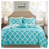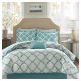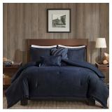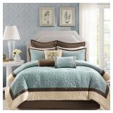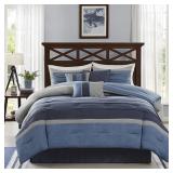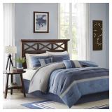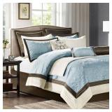 Madison Park Saban Bedding. Brush your bedroom in cooling blue with this bedding featuring a soft faux-suede look and a mixture of patterns and designs to please the eye. Queen. Retail Packaging. MSRP $330.00. |