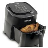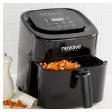 NuWave Brio 6 Quart Digital Air Fryer. The NuWave 6 qt. Digital Air Fryer uses hot air in combination with high-speed air circulation to perfectly cook your favorite fried foods. Now you can bake, roast and grill a wide variety of foods using little to no oil. Includes a removable drawer and food basket that has durable non-stick coating. Temp range from 100-400 degree in five-degree increments. Digital timer is programmable up to 100 hours. Six presets include: fries, frozen fries, nuggets, steak, poultry and fish. Pre-heat button ensures desired results every time. Reheat button automatically sets to 360˚ F for 4 minutes. Includes three wattage control settings: 900w/1500w/1800W. Basket divider lets you keep food separated while cooking. Dimensions: 11"L x 11"W x 12.25"H. Retail Packaging. MSRP $164.00. |