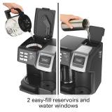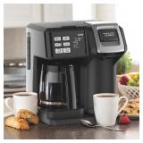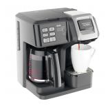 Hamilton Beach® FlexBrew® 2-Way Coffee Maker. The 2-Way FlexBrew Coffeemaker maximizes your brewing flexibility and offers more brewing options than most coffeemakers. To start your day, you can use the "single-serve side" to brew into a standard-size cup or brew up to a 14 oz. travel mug. What’s more, you have the choice of brewing with a K-Cup pack or your favorite ground coffee. On mornings when you want to enjoy cup after cup, or when you’re entertaining, the “carafe side” makes a full 12-cup pot. So much in so little space, the 2-Way FlexBrewCoffeemaker provides maximum flexibility for your coffee-drinking enjoyment. Retail Packaging. MSRP $110.00. |